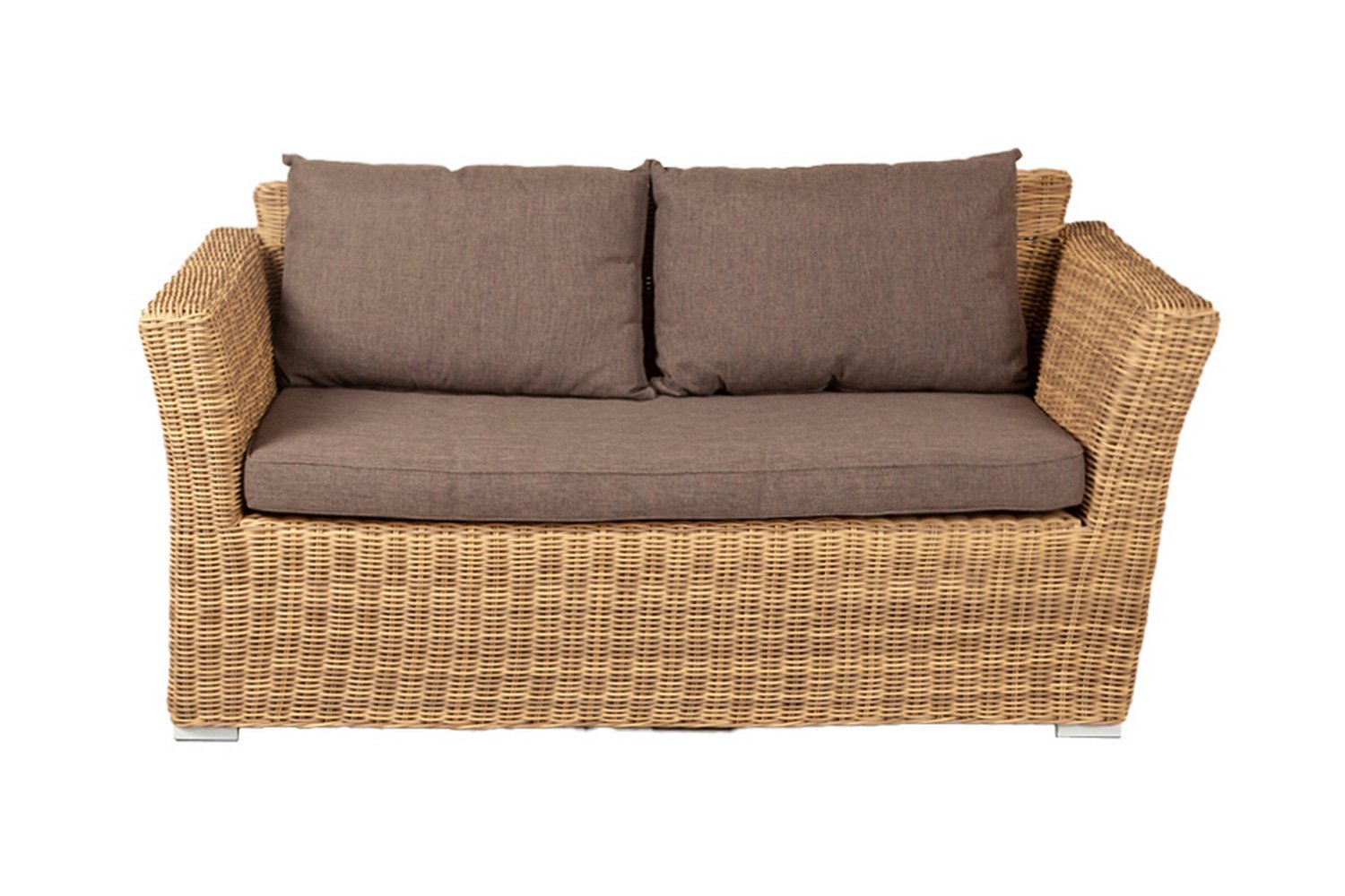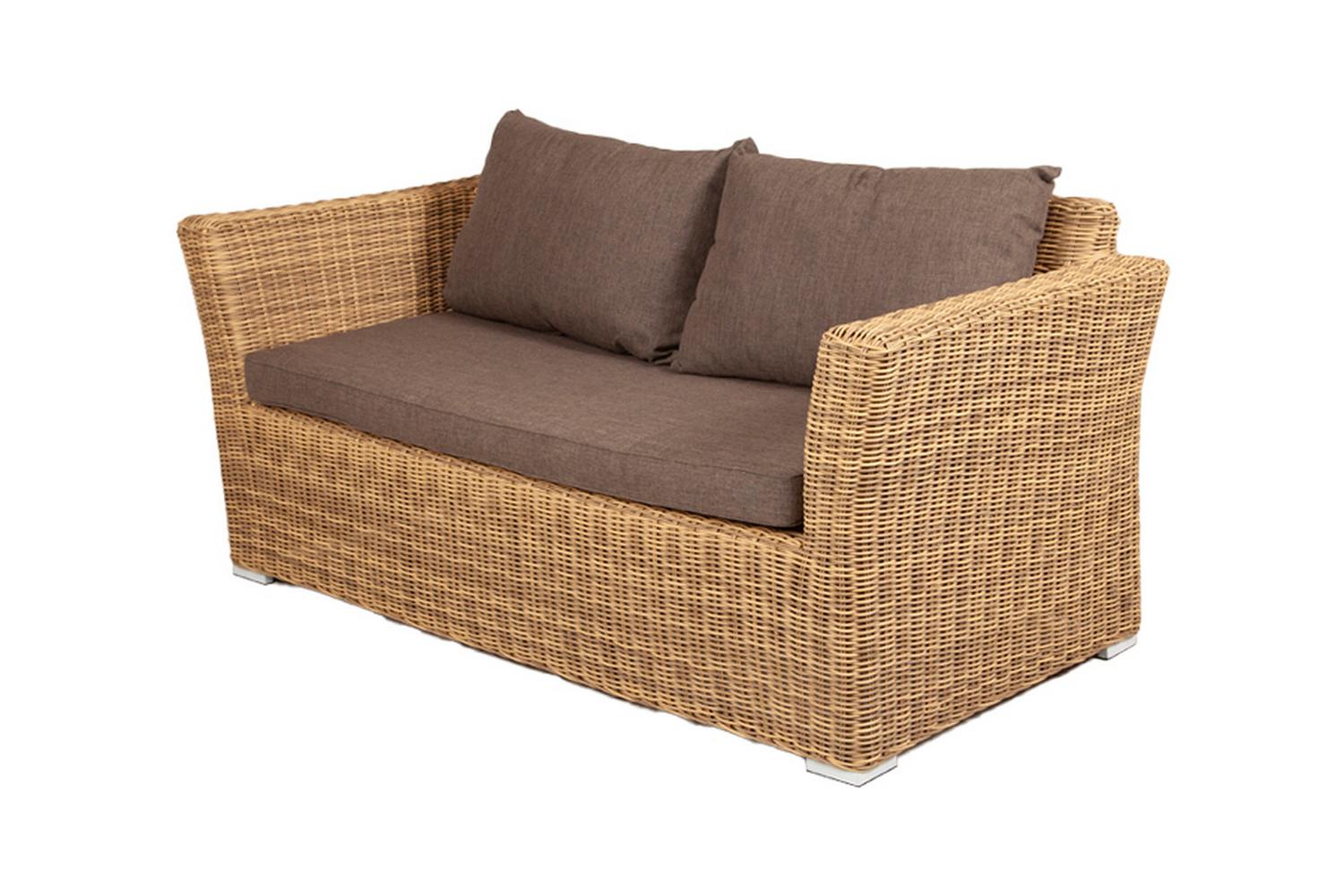 Двухместный диван из коллекции Капучино обладает достаточной прочностью для установки на улице. Диван имеет габариты 170х81.5х86.5 см, изготовлен из алюминиевого каркаса и покрыт переплетение искусственного ротанга бежевого (соломенного цвета). Дизайн дивана приятный и универсальный, и при этом диван прослужит долгое время в экстремальных условиях.