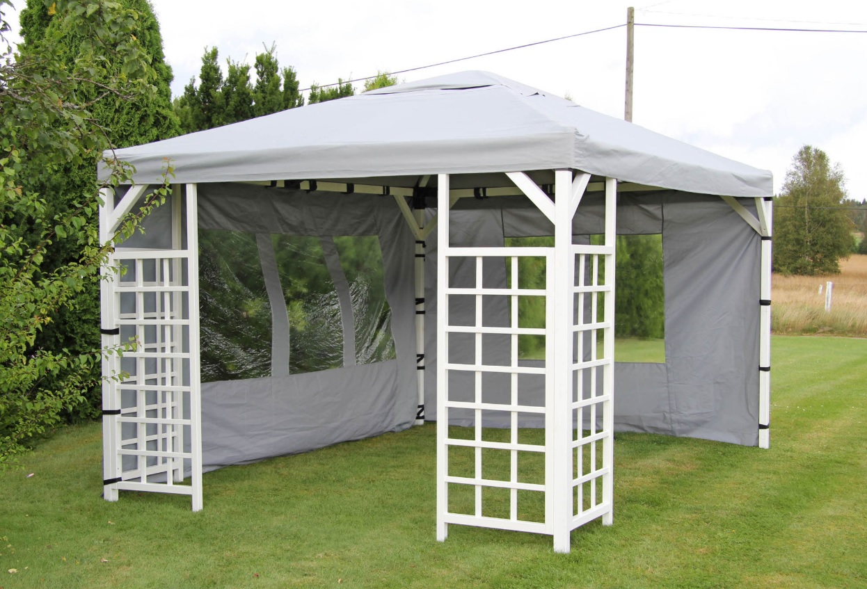 В куполе крыши имеются прорези для пропуска сильного ветра, к каркасу павильона крепится липучками.