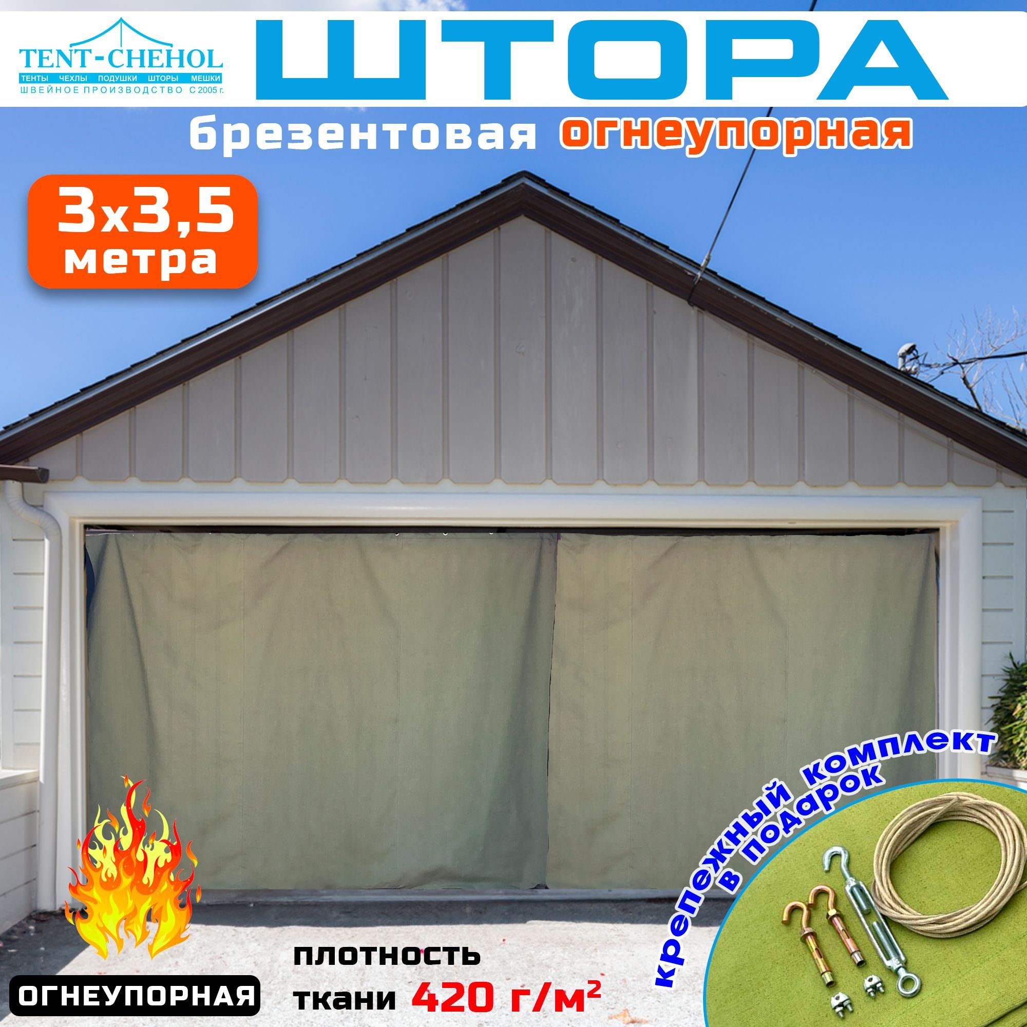 Брезентовая штора огнеупорная для гаража, высота 300 см, ширина 350 см